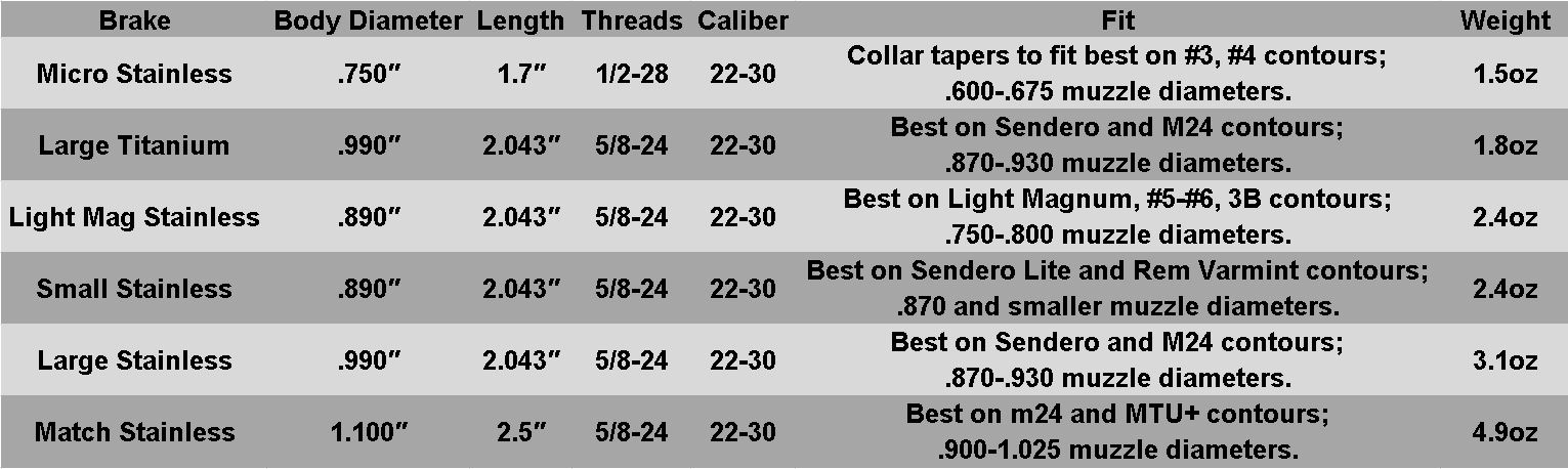 The TS Customs Self-Timing Ghost brake comes in multiple diameters to match with a variety of different barrel profiles. Please see description below for dimensions and size recommendations.
