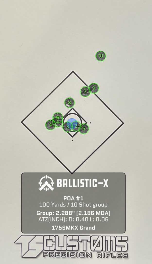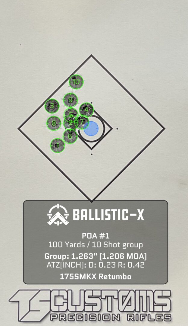 So why not run the Hornady 175 ELD-X with a .689 G1 or a Berger 175 Elite Hunter with a G1 of .656? Honestly they are both solid options with better BC’s but at 6.8mils to 1100 yards I don’t feel as though I’m missing out ballistically. The Sierra MatchKing X makes tiny groups and held perfect elevation. Even more impressive is the 3 round group on the ram at 1100, which was shot with 3 different shooters, 1 shot each!