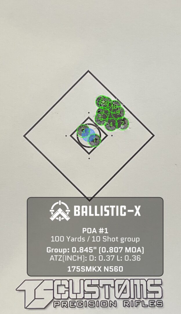 I chose 68.5gr of N560 as my final load. Shooting in the mid .1’s and low .2’s I didn’t see the need to experiment with anything further. I entered Seirra’s published G1 of 0.597 into my binoculars with a velocity of 3144fps and the dope ran true all the way out to 1100 yards.